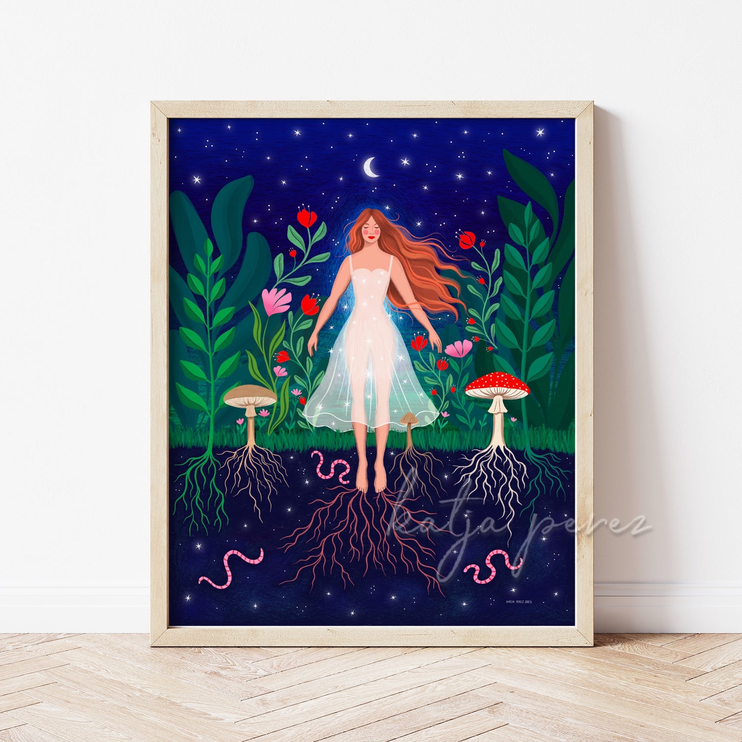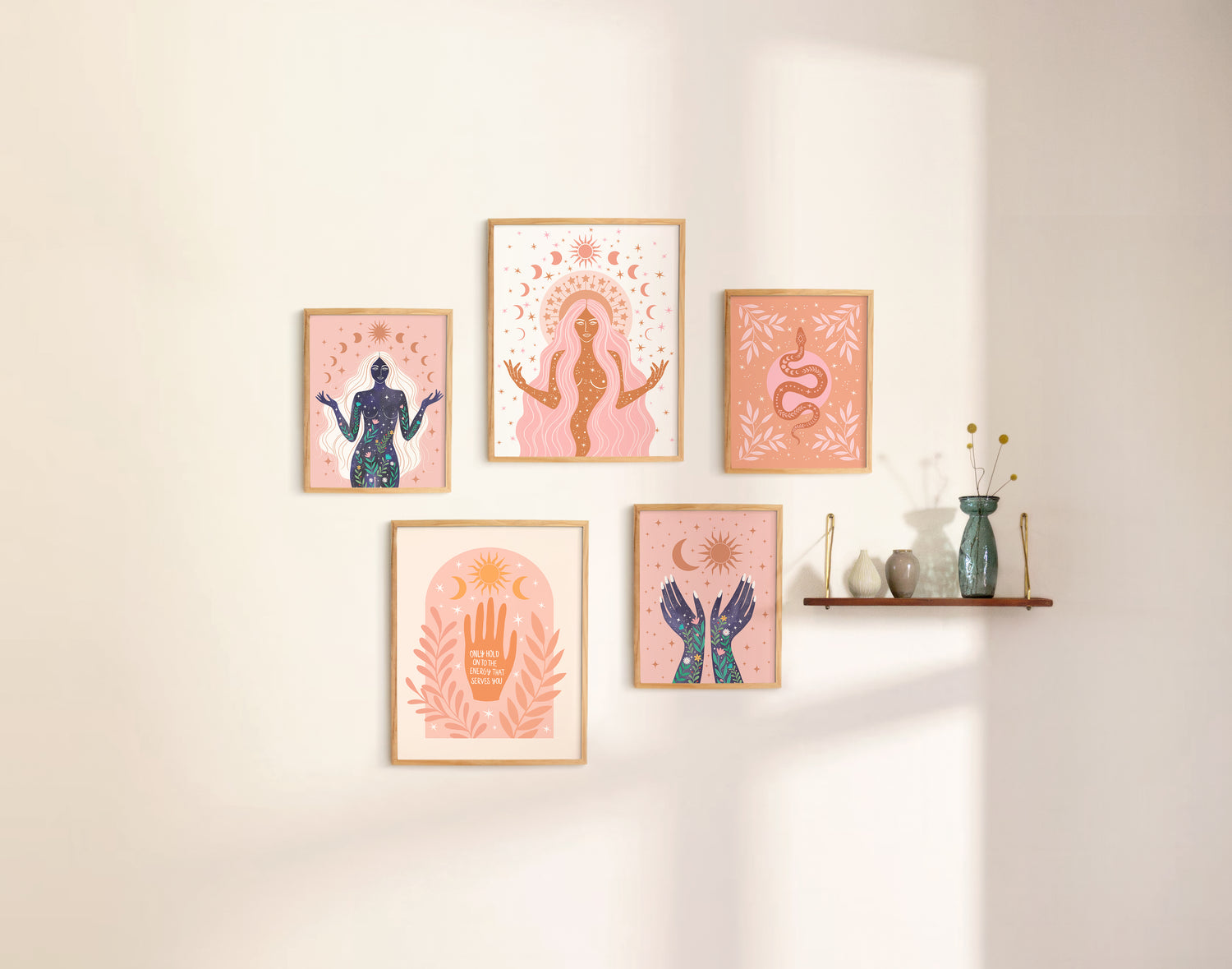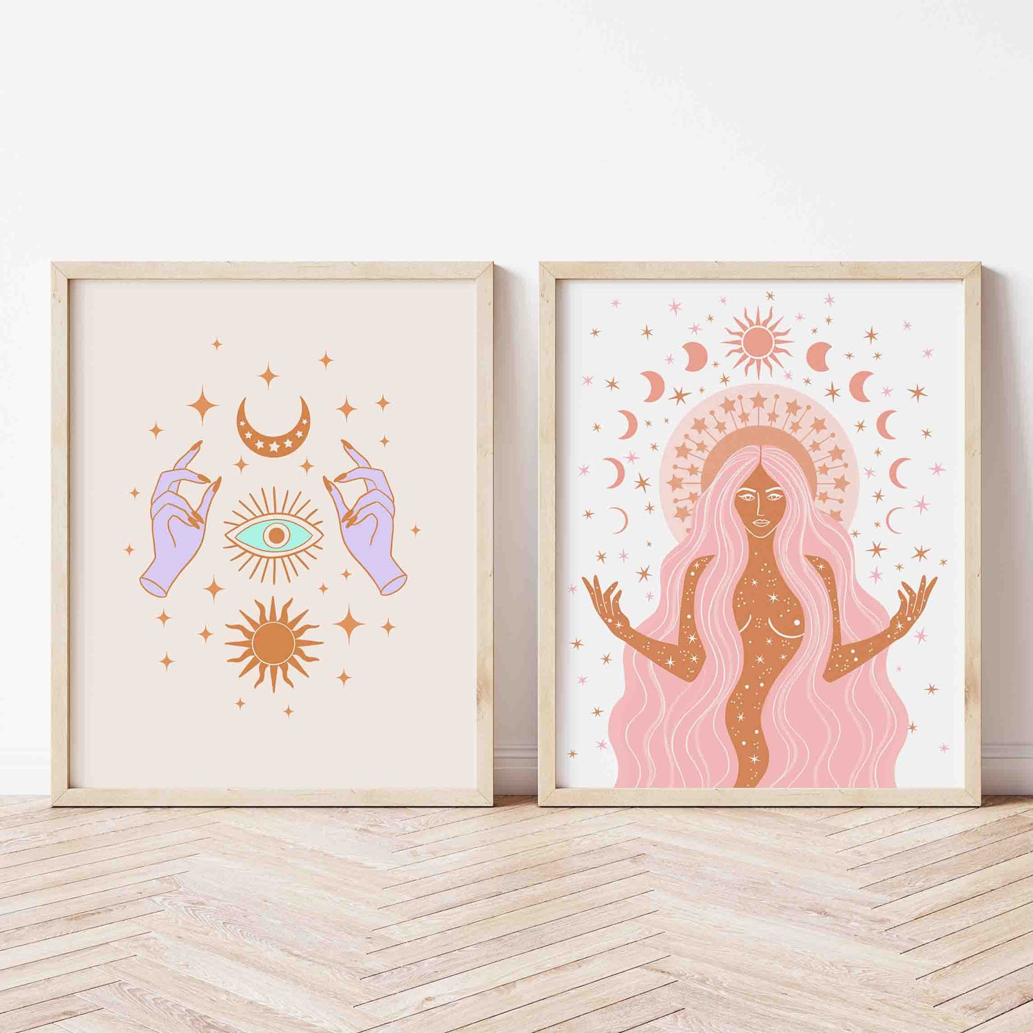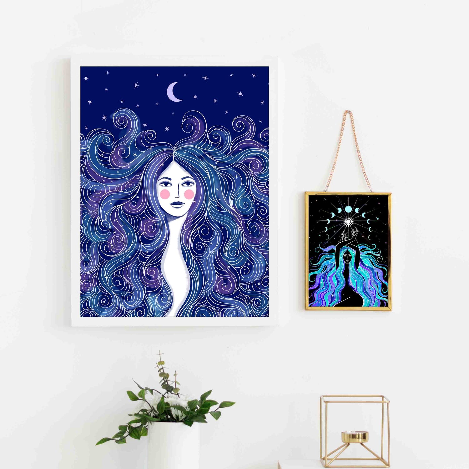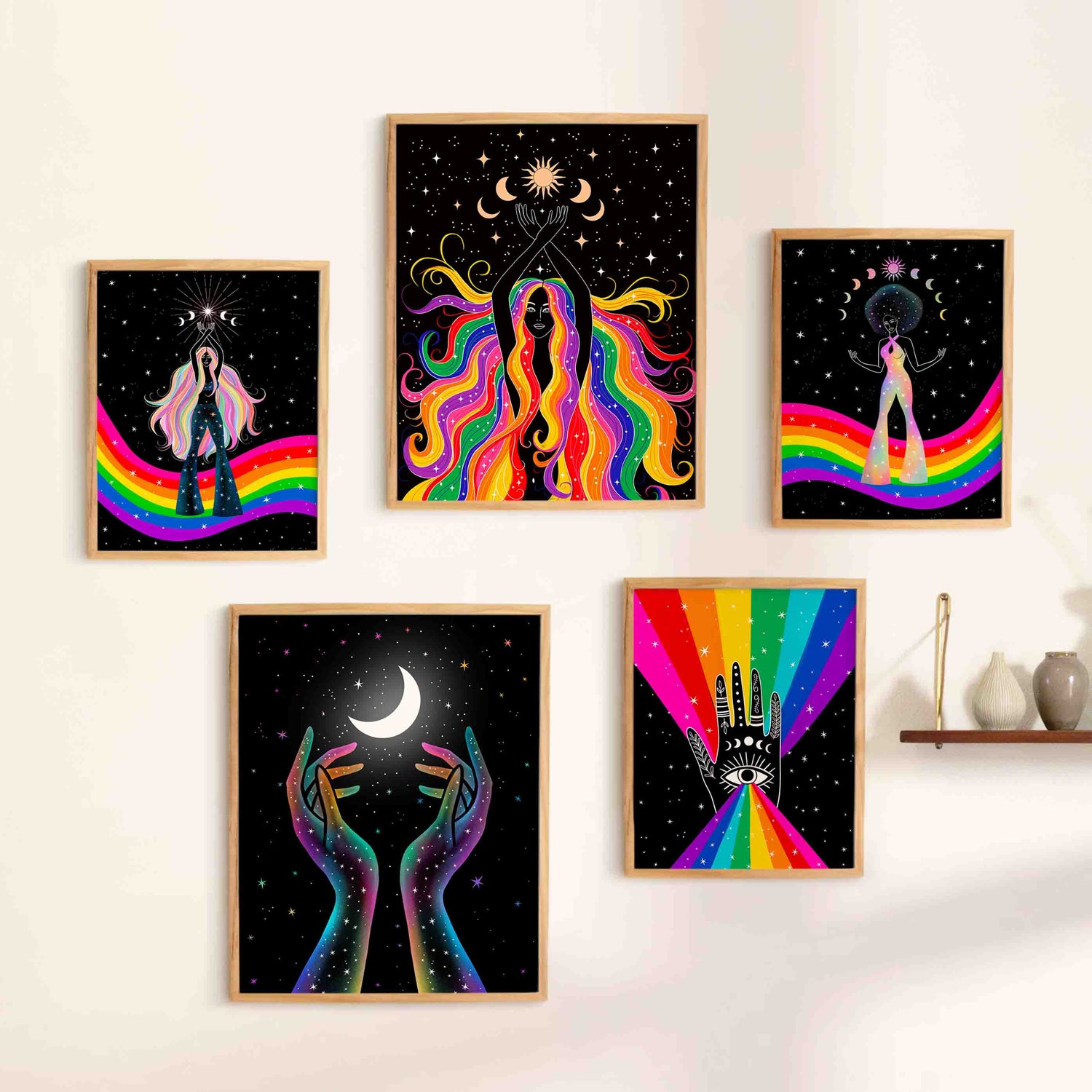 "I’ve been wanting to buy one of this artists art for a long time, I’ve been following her on Instagram and LOVE her art. This is the perfect piece for my new apartment. It has everything, sun, moon, and soft rainbow colors. I feel like an epic goddess looking at this."