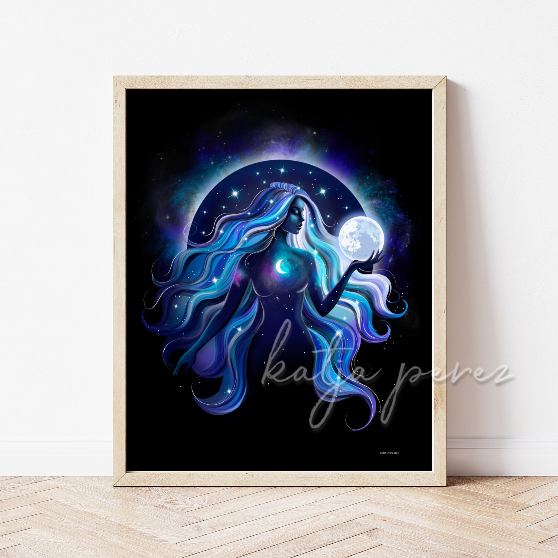 Discover tranquility with the Cosmic Goddess print, a piece that turns any room into a peaceful retreat. It's an invitation to unwind, offering a touch of magic and a nod to the divine in everyday life. Perfect for creating a calming meditation space or simply as a beautiful reminder to pause and breathe. Embrace this print as a part of your daily well-being ritual, letting it inspire moments of peace and personal reflection.