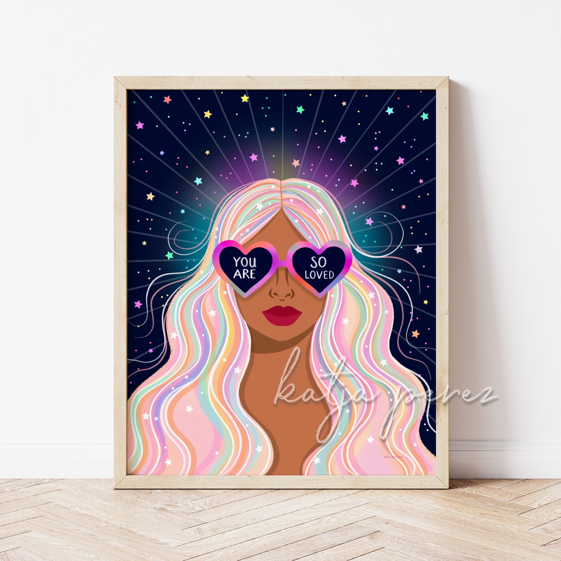 "You Are So Loved" is a mesmerizing art print that is guaranteed to fill your space with positive energy. This print features cosmic imagery and a powerful message that is all about self-love. The message, "You Are So Loved," is a reminder that we are all deserving of love and affection, no matter what. The vibrant colors and magical atmosphere of this print will bring a touch of uplifting energy to any room, reminding you to embrace the beauty of self-love and positive vibes. This print is perfect for anyone who is looking to cultivate good energy, spread love, and surround themselves with magic.